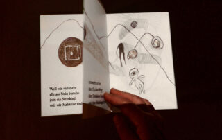 Es entstehen nun Objekte, die die Grenze zur Skulptur, zur Installation und selbst zur Architektur über- schreiten, die beim Durchblättern kinoartige Erlebnisse vermitteln und die, auf Stoff gedruckt, sogar “trag-bare Kunst” sein können. Es entstehen Hybridformen zwischen Künstlerbuch und Kunstbuch oder zwischen Künstlerbuch und Katalog. Weltweit entstehen Projekte, die ebenfalls an Bekanntes anknüpfen und darüber hinausgehen, so etwa Mail-Art-Projekte. Es entstehen Zentren für Buchkünste, die ihre durch die Pandemie in die Krise geratenen Ausstellungs- und Workshop- Programme erfolgreich via Zoom einem hochmotivierten internationalen Publikum anbieten, entweder kostenlos oder für wenig Geld. Nicht zuletzt ist das Buch- und Textobjekt unserer Zeit auch ein Beispiel für einen größeren Trend in der zeitgenössischen Kunst, nämlich eine enge Verbindung von Bild und Text.